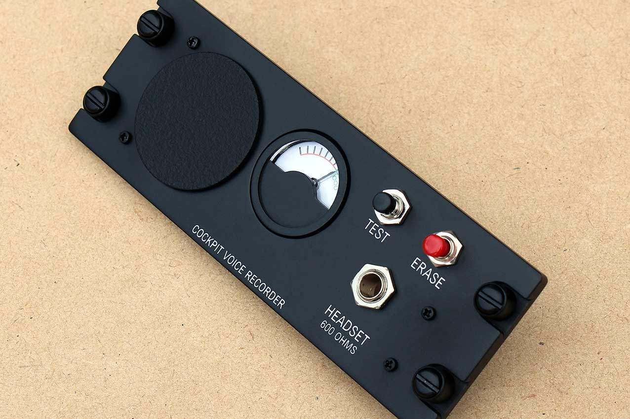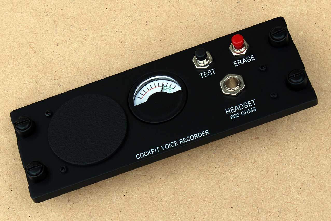 This fully-backlit panel will be shipped fully assembled - as it appears in the above photos - and will include the red and black pushbuttons, a dummy microphone, a dummy gauge, connection wires for the 12V backlighting, a stereo phone socket, and four dummy Dzus fasteners.