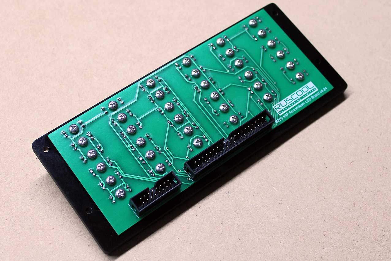 Our Main Annunciator Panel is shipped complete with a fully-populated LED circuit board, although there is no interface board supplied. There is a multi-Pin header on the rear of the LED circuit board to allow you to connect this to your own connector/controller board(s) or you can purchase one of our annunciator controller boards here.